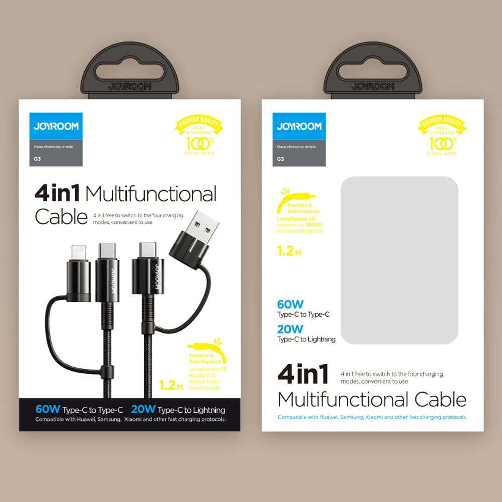 Joyroom 4in1 multifunction fast charging cable USB Type C / USB – USB Type C / Lithtning Quick Charge Power Delivery 3 A 60 W 1,8 m (S-1830G3)
