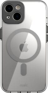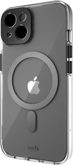 Hibridni zaščitni ovitek Moshi iGlaze v izvedbi MagSafe iz ultra prosojnega in trpežnega polikarbonata. Integriran obroč z visokokakovostnimi magneti zagotavlja hitro polnjenje s polnilnikom MagSafe in odlično prileganje dodatkom (npr. denarnica, brezžični powerbank ali avtomobilsko držalo). Etui je opremljen tudi z aluminijasto zaščito za otok kamere, ki ščiti štrleče leče. Integrirani gumbi za glasnost in gumb za bujenje zagotavljajo nemoteno delovanje vseh funkcij telefona, hkrati pa omejujejo vnos umazanije v ohišje.