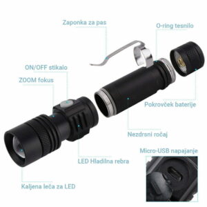 ZOOM funkcija razširi ali zoži snop in osvetli objekte tudi do 200m daleč.