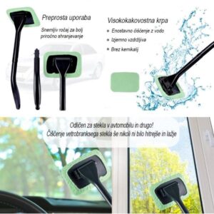 nSedaj je tukaj prava rešitev – set za čiščenje vetrobranskega stekla s pomočjo ročke na katero se natakne krpa iz mikrovlaken.