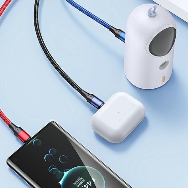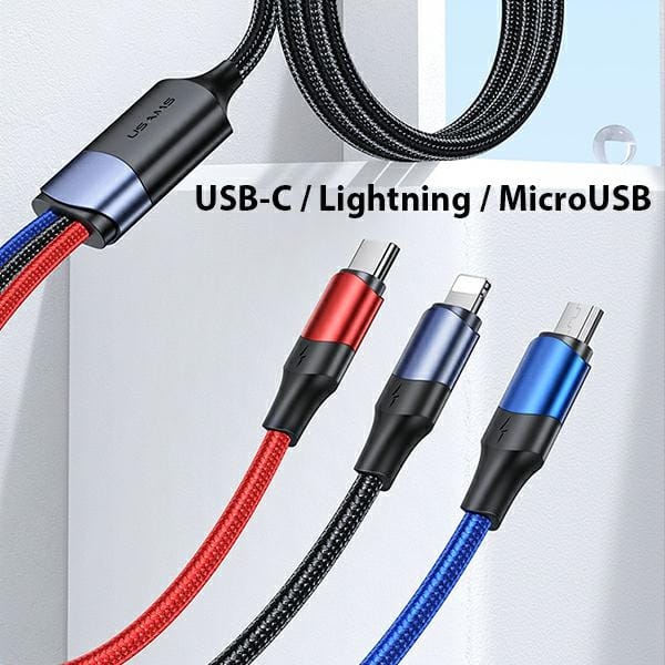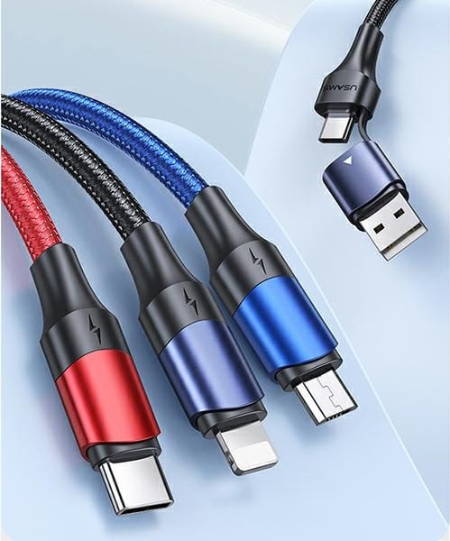 Eleganten, pleten kabel USAMS US-SJ549 U71 je izdelek za vsakogar. 3v1 (lightning, microUSB in USB-C) bo polnil tri naprave hkrati. Kabel ima vgrajen adapter USB-C na USB-A. Najlonsko tkanje bo zagotovilo dolgo in nemoteno uporabo kabla, brez nevarnosti mehanskih poškodb. Kabel je opremljen s pametnim čipom – inteligentnim integriranim vezjem, ki bo našo napravo zaščitilo pred nepričakovanimi prenapetostmi.